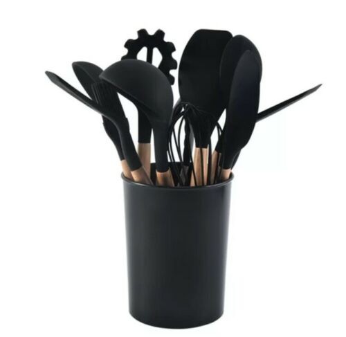 12-PCS Kitchen Silicone Utensil Set - Non Stick Cooking Utensils Wooden Handle