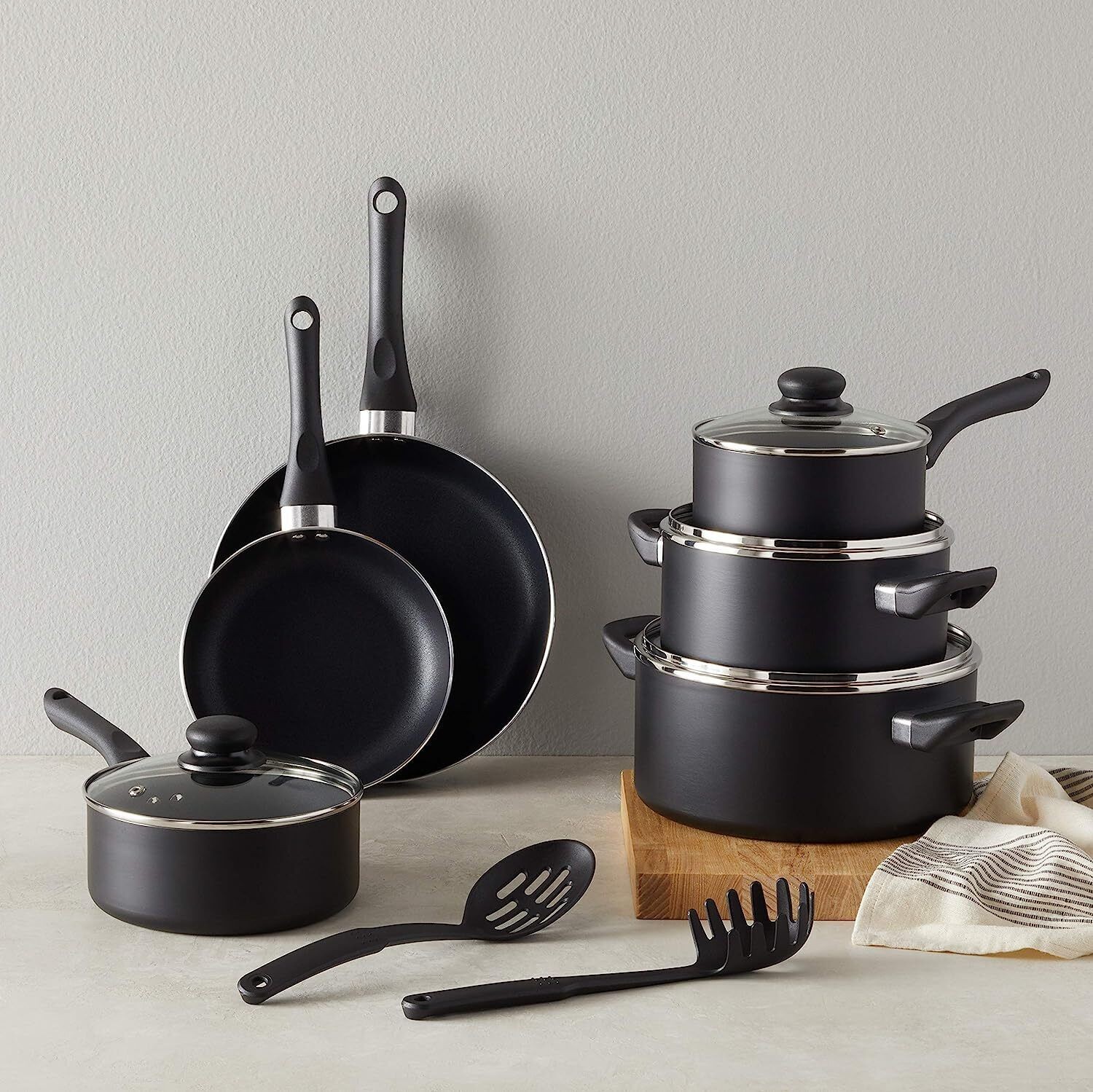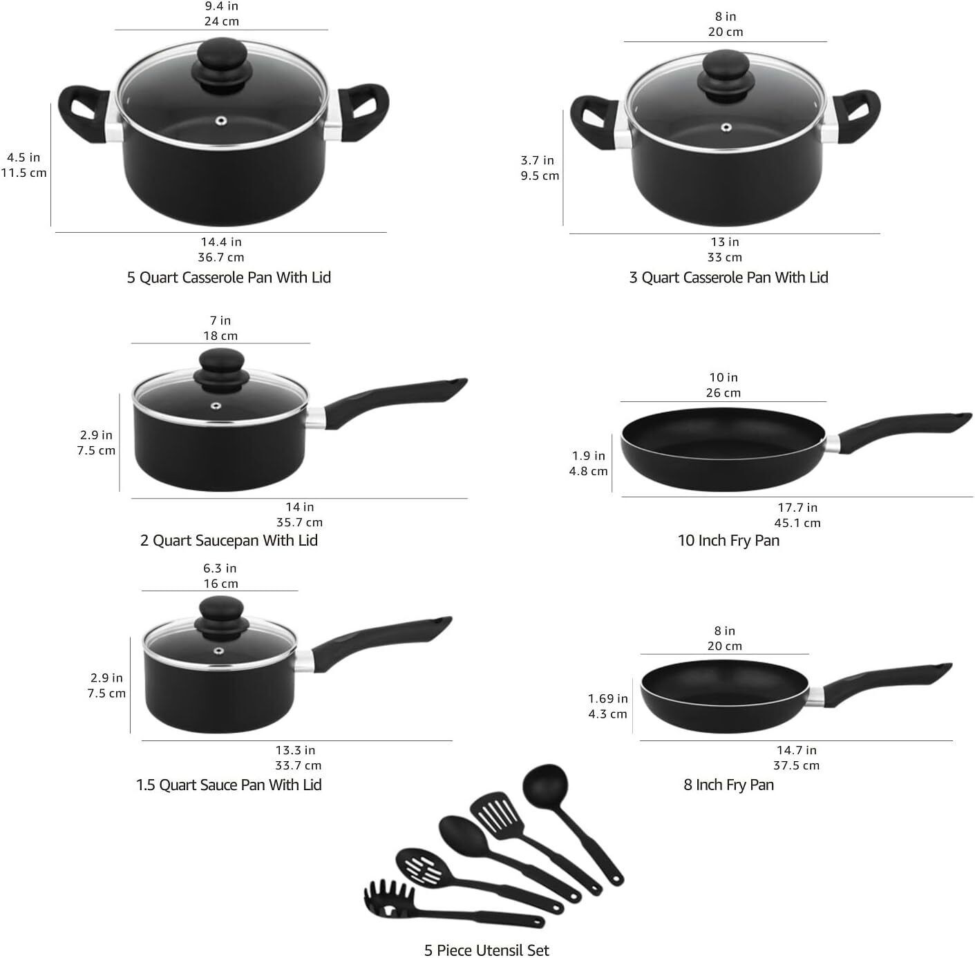 15-PIECE NON-STICK COOKWARE SET Home Kitchen Cooking Pots Pans Utensils Black US