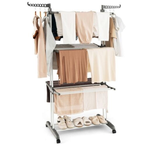 4 Tier Clothes Drying Rack Collapsible Shelves Laundry Hanger W/ Two Side Wings