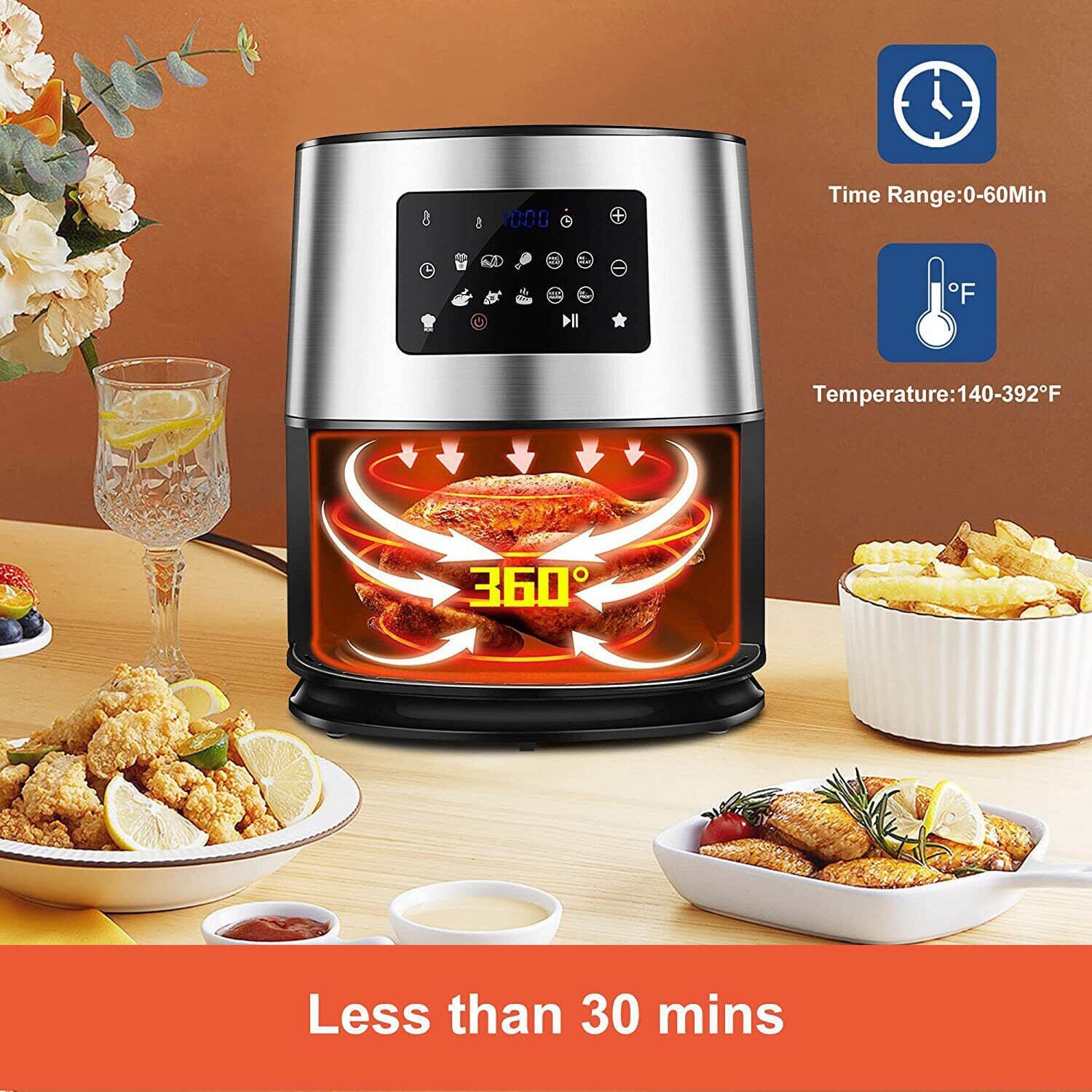 Air Fryer 6.3 Quart Airfryer Oilless Oven Cooker LED Screen 10 One-Touch Presets
