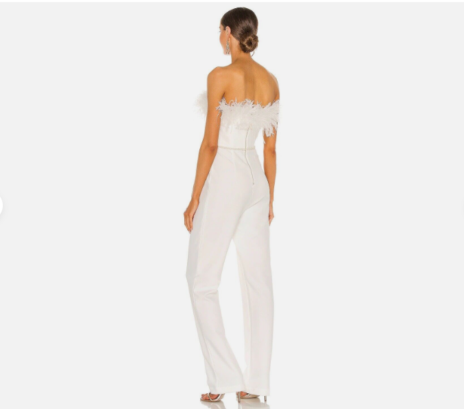 BRONX AND BANCO Revolve Lola Blanc Feather Jumpsuit Wedding Size S / 4 *NEW*