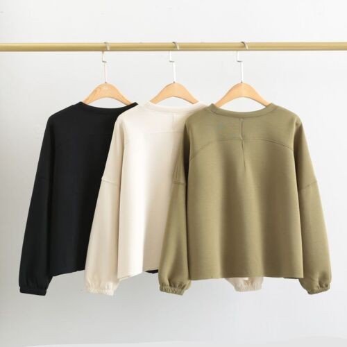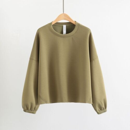 Casual Crewneck Women Sweatshirts Cropped Loose Fit Long Sleeve Workout Tops New
