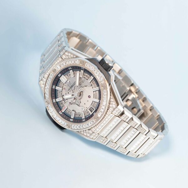 HUBLOT ウブロ 時計 ビッグ・バン インテグレーテッド タイムオンリー チタニウム パヴェ 456.NX.0170.NX.9804 スケルトン文字盤 自動巻き