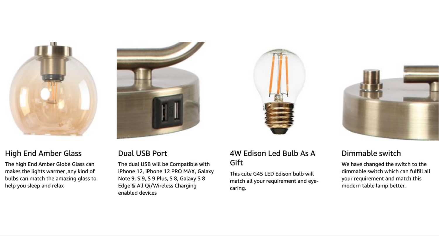 • Secondly, This lamp has a very useful dual fasting USB port ,which can help you to charge your Phone ,Pad or any other electronic equipment. Thirdly,we have added one 4W led bulb in this lamp for a gift for our loved customers,Which we hope it will shine your lovely home.