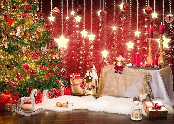 LYCGS 7X5FT Red Christmas Background Christmas Theme Photography Background Christmas Tree Gift Decoration Background Family Children New Year Background Party Decoration X-86