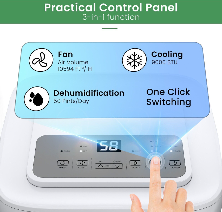 3 in 1 FUNCTIONALITY - The compact and modern air conditioner combines 3 efficient function with cooling, dehumidifier and fan to meet all your cooling & ventilation needs. Waykar portable AC unit will keep air both dry and cool in easy operation, provides the healthy and cool air environment, which is the Best Option to save money and space.